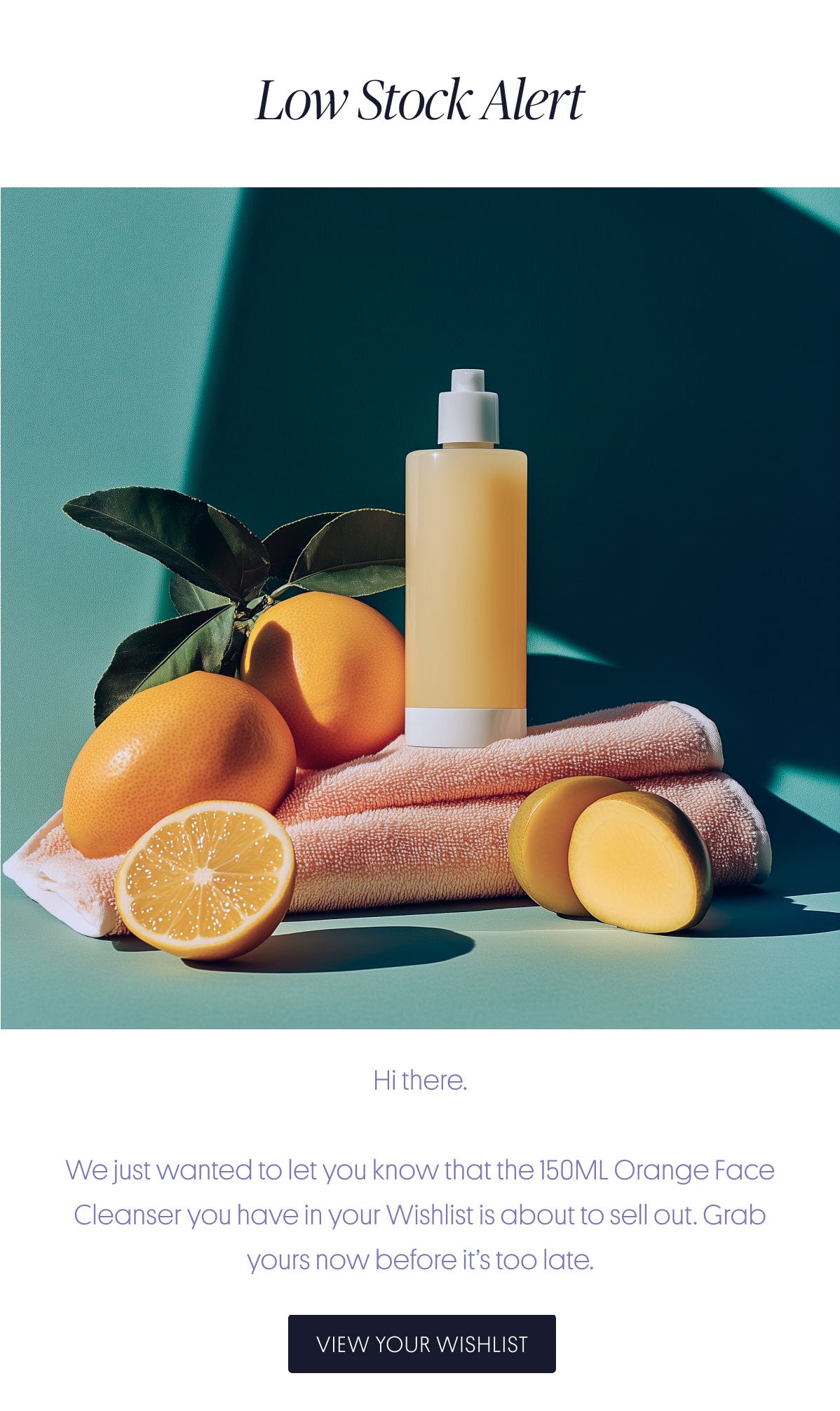 Delight customers by letting them know when an item on their Wishlist is low in stock.